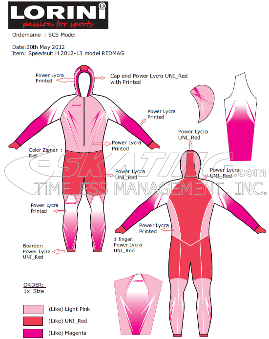 さて、2012-13モデル第2弾のSCSタイプは、3M追加可能、スピードファブリックに転身することも可能なモデルです。昨季同様、自由に配色を選んで頂くことが可能です。配色は、如何様にも対応できますが、詳細は都度確認ください。既成サイズのみ。スピードファブリック素材用の場合は、カスタムサイズのみになります。一度制作した配色のモデルと同じ配色のものは制作しません。つまり、世界にこの一枚のワンピース。あなただけのワンピースを制作します。早めにオーダーしないと、自分の好きな配色で制作できなくなっちゃいます。価格は1着35,700円(送料込)。3M追加モデルは、39,900円。カスタムPSSは、39,900円(3Mなし)になります。スピードファブリックモデルは84,000円(3M付)になります。お申し込みは、メール(info@i-skating.com)でお願いします。ご注文頂いてからの制作となり、納品までお時間を頂くことになりますので、予めご了承ください。以下がサンプル画像になります。