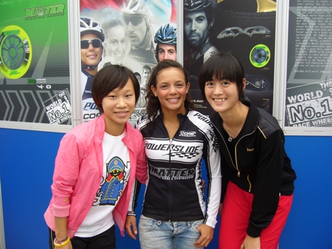 その間。。。。。ベルリンマラソンを終えて、セシリアが到着。たくさんのファンに囲まれて、大人気。そんな中、中国No1の段選手、台湾No1の黄選手とのビックなユニットの一枚をGET。ラッキー!